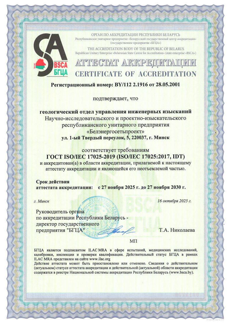 🔬Геологический отдел управления инженерных изысканий РУП «Белэнергосетьпроект» вновь успешно прошел процедуру аккредитации на соответствие требованиям ГОСТ ISO/IEC 17025-2019. Этим отдел подтвердил работоспособность внедренной системы менеджмента качества и свою техническую компетентность.